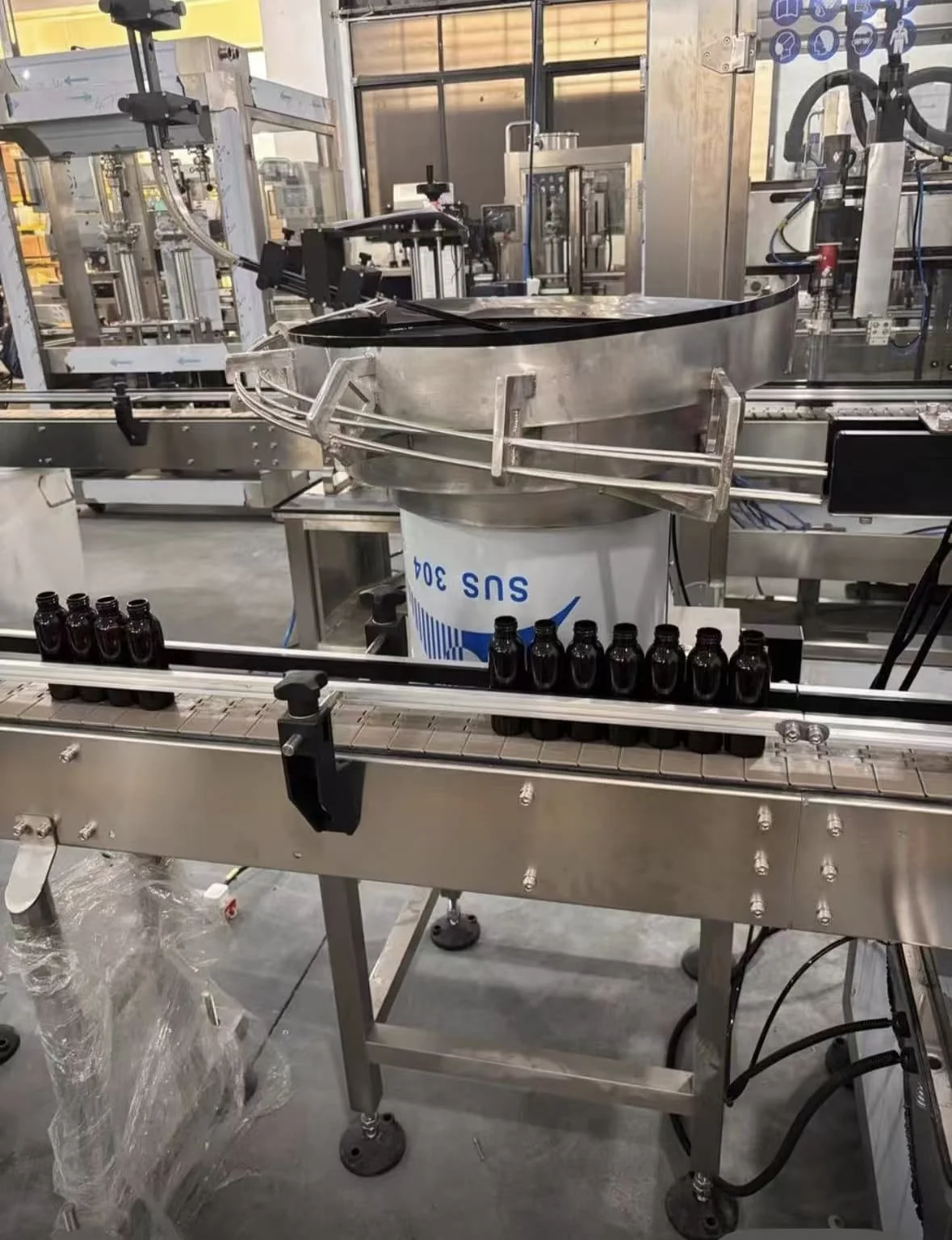 Sıvı ve kalın malzemeler için şişe doldurma, plastik kapaklar için kapaklama ve kapatma makinesi, yuvarlak şişe için etiketleme makinesi
